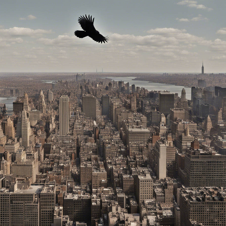 A crow in Manhattan. Image created using DreamUp.