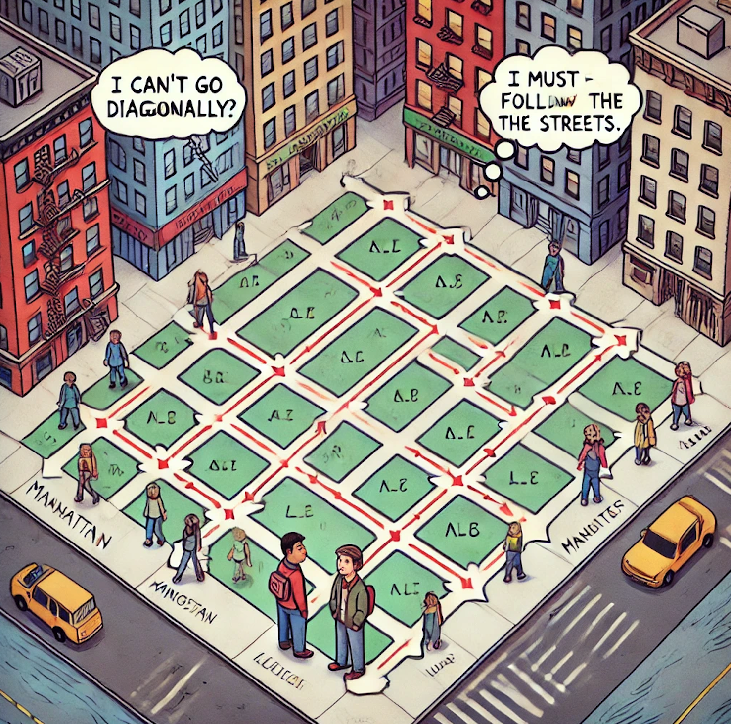 Manhattan distance. Image created using DALL-E.