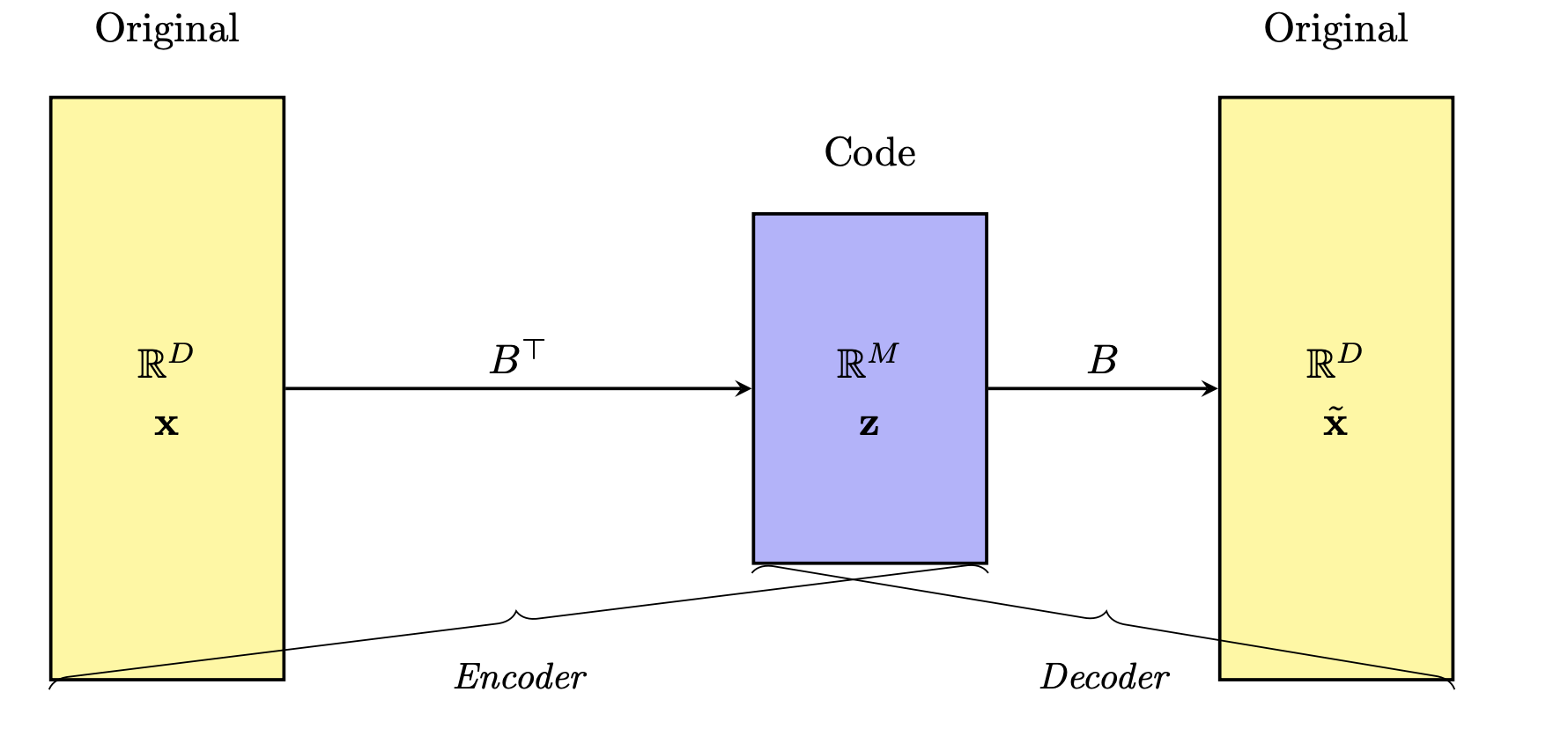 Note: The figure shows features coming in from the right and getting compressed to fewer (new) features. What is not shown is that there are multiple rows in the dataset.